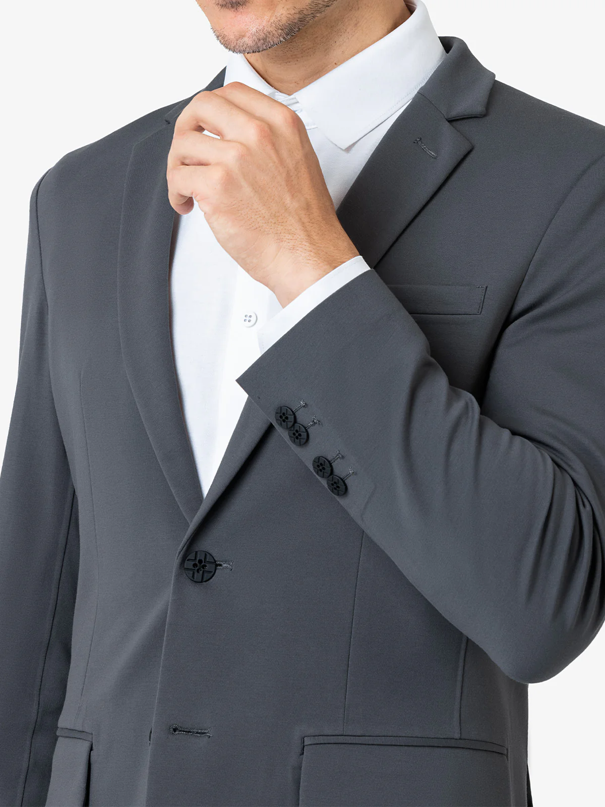 Made with proprietary 8-way stretch fabric that provides comfort unlike any suit you've worn before. Cutting-edge design and technology makes the xSuit 4.0 jacket wrinkle resistant and machine washable, allowing you to look your best at all times with minimal effort. A versatile suit that's lightweight and breathable, ready for any occasion. This exclusive graphite dark grey color will stand out as your go-to suit or a complementary suit with another black or dark blue one.